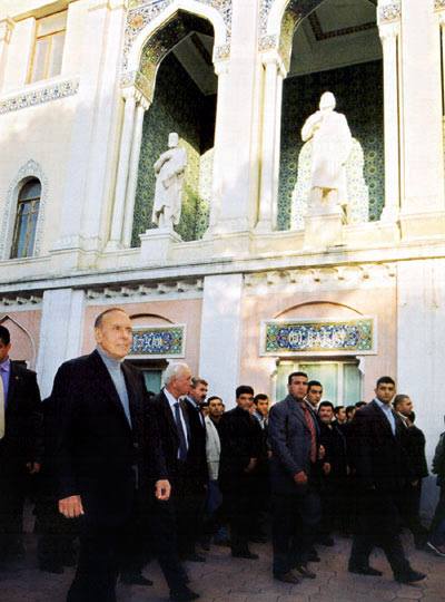 (Elə buradaca həmin səfərlə bağlı digər maraqlı bir ayrıntını da bölüşmədən ötə bilmirəm. Təyyarə ilə Bakıdan Naxçıvana uçuşun adətən 1 saatdan az çəkdiyini hamımız bilirdik. Ancaq nəsə yol uzanırdı. Sonradan bizə bəlli oldu ki, Azərbaycanın ən seçkin insanlarından ibarət böyük bir dəstəni aparan Prezident təyyarəsi üçün uzaqgörən, hər incəliyi nəzərə alan Heydər Əliyevin göstərişi ilə Ermənistan üzərindən olan hava dəhlizi deyil, ikiqat uzun başqa yol seçilibmiş. Hətta bununçün 2 gün əvvəl həmin marşrutla sınaq uçuşu da həyata keçirilibmiş).